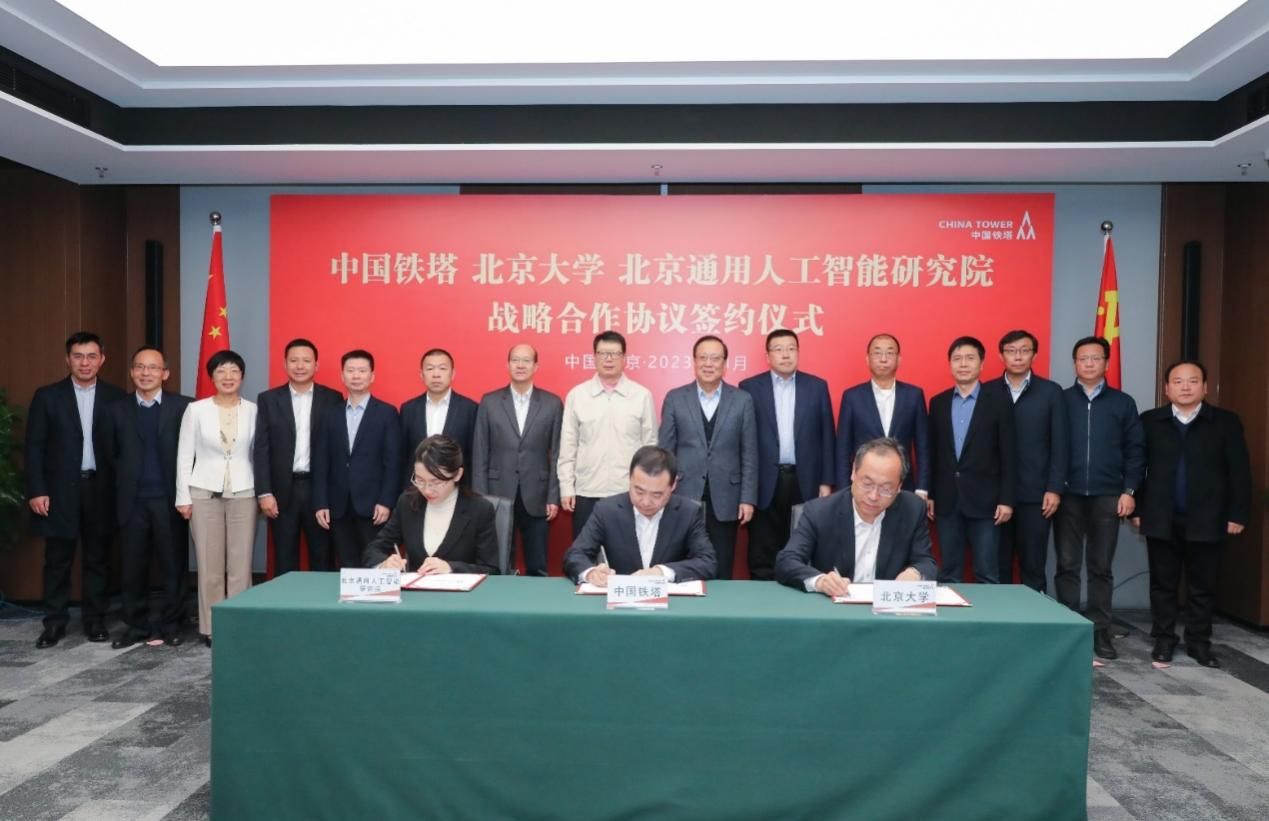 11月13日下午,北京大学党委书记郝平一行访问中国铁塔股份有限公司。中国铁塔股份有限公司党委书记、董事长张志勇会见郝平一行。智能学院院长、北京通用人工智能研究院院长朱松纯等参加会谈。会谈后,中国铁塔股份有限公司副总经理刘国锋,北京大学党委常委、副校长张锦,北京通用人工智能研究院常务副院长董乐分别代表三方签署《中国铁塔股份有限公司、北京大学、北京通用人工智能研究院战略合作框架协议》。