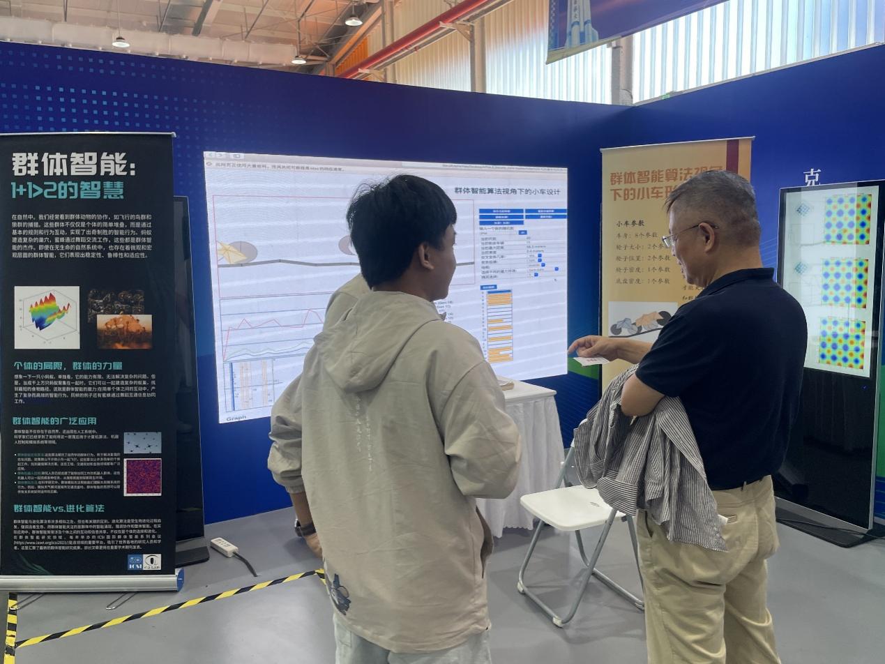 计算智能实验室展示了群体智能算法的可视化展示。通过生动形象的图形和动画展示,参观者们可以直观了解到群体智能算法如何模拟和借鉴自然界中的群体行为,以实现智能决策和问题解决的能力。这种可视化的展示方式使复杂的算法变得易于理解,引来众多观众的目光。