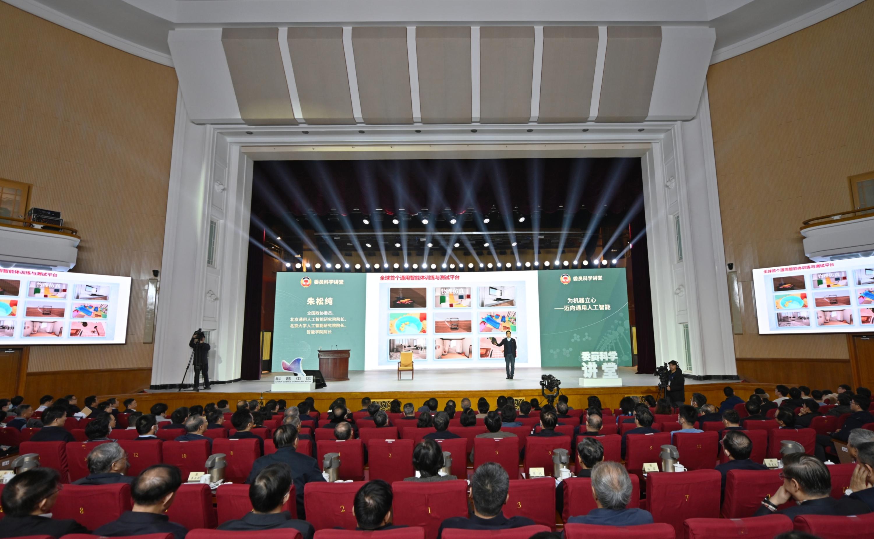 全国政协委员、北京大学智能学院、人工智能研究院院长朱松纯教授以“为机器立心——迈向通用人工智能”为题作讲座。部分全国政协委员、地方政协委员、高校学生、科研工作者等800余人参加。全国政协常委、教科卫体委员会副主任王志刚主持讲座。