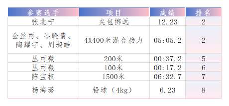 智能学院和人工智能研究院共有26位老师参加本届春季运动会。老师们在多个项目中奋勇争先,取得了优异成绩。其中金丝雨、陶耀宇、周昶皓、岑晓倩四位老师荣获4x400米混合接力第二名,张北宁老师荣获男子D组夹包掷远第二名,丛雨薇老师荣获女子A组200米第五名、100米第六名,陈宝权老师荣获男子D组1500米第七名,杨海璐老师荣获女子B组铅球(4kg)第八名。
