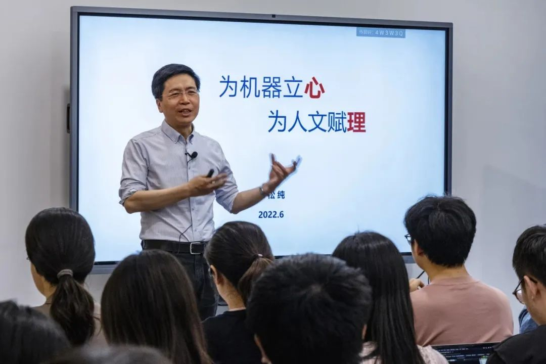 在北京大学,朱松纯推动成立智能学院,牵头组建跨媒体通用人工智能全国重点实验室,主导建设智能科学与技术"双一流"学科,同时通过人工智能研究院推动人工智能与人文社科的深度融合,开拓新文科发展路径。他系统构建全新人工智能课程体系,联合北京大学、清华大学创办通用人工智能实验班(简称"通班"),现已成为高校创新人才培养的标杆项目。目前,北大、清华通班累计培养300余名专业人才。