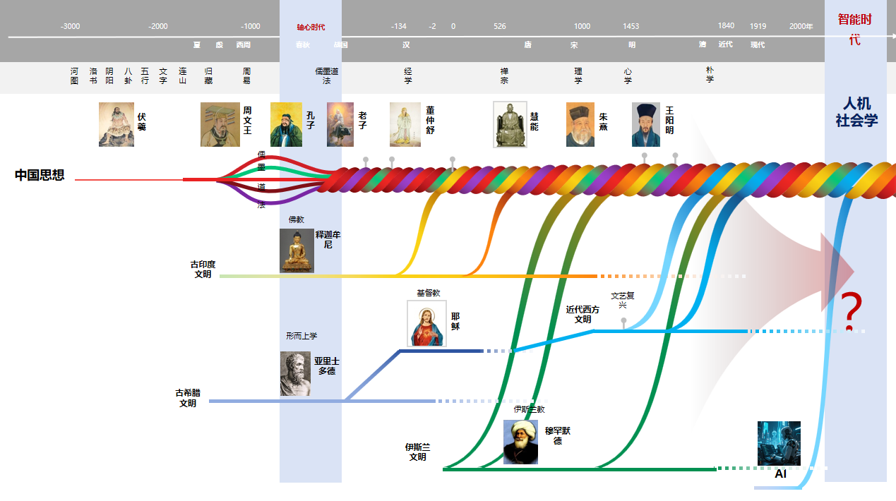 在演讲结尾,朱松纯以史为鉴,展望智能时代人类文明走向。中华文明历经从“一元多体”到“多元一体”的融合历程,其高度包容的特征更接近未来人机文明协同演化趋势。他提出,面对全球秩序重塑与人机关系的不确定性,人类社会正在迎来一个思想大爆发的新的“轴心时代”。源远流长的中华文明为应对智能时代挑战提供了和合共生、美美与共的实践路径,其融合与互鉴范式将为人类文明演化贡献中国智慧与中国方案。
