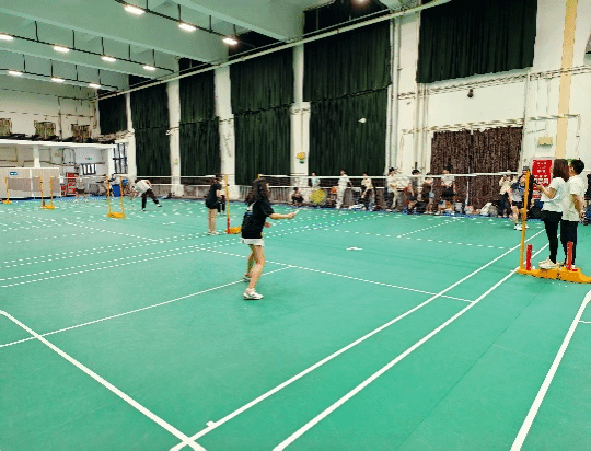 本次交流赛以团体赛形式展开,涵盖男单、女单、男双、混双四大竞技项目,更创新加入颠球、羽毛球保龄球、羽毛球投壶三选一趣味赛环节,既考验竞技实力,又充满欢乐氛围。参赛队伍各具特色,队名个性十足 —— 羽濛濛队、摸鱼也要赢队、Crazy diamond 队、智在四方队、娱乐至上队、大运队、呼风唤雨队,每一支队伍都带着满满的自信与期待登场。