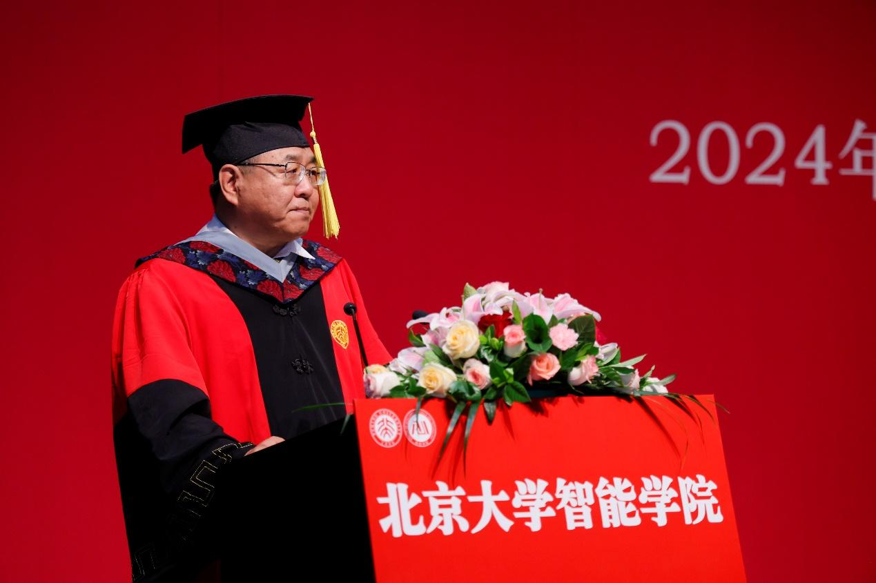 7月1日上午,北京大学智能学院2024年毕业典礼暨学位授予仪式在北京大学百周年纪念讲堂举行。北京大学智能学院院长朱松纯,智能学院党委书记吴玺宏,智能学院副院长、党委副书记罗定生,智能学院副院长陈宝权,智能学院副院长林宙辰,智能学院院长助理王立威,智能学院教职工代表以及智能学院2024届毕业生参加典礼。同时受邀观礼的还有信息科学技术学院智能科学与技术专业的2024届本科生、元培学院通用人工智能实验班2024届本科生以及毕业生亲友。典礼由智能学院党委副书记宋国杰主持。