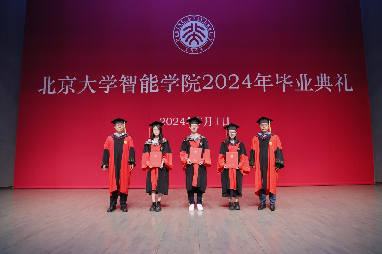 吴玺宏宣读《北京大学智能学院2024届优秀毕业生表彰决定》。朱松纯、吴玺宏、罗定生、林宙辰等老师共同为优秀毕业生颁奖。