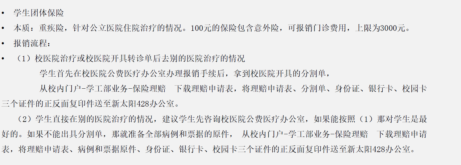 1.学生年度团体保险对于规避大家在校期间出现身体健康问题、意外伤害事故等问题,都是非常重要的保障。原则上学院所有学生均需参保。同学可根据自身情况,自由选择保障方案1或方案2。如有特殊情况,可与班主任/辅导员进行沟通。